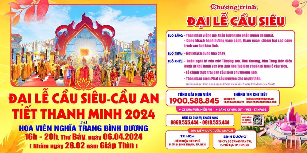 Lần thứ 18 – Đại lễ cầu siêu tiết Thanh Minh tại Hoa viên Bình Dương. Mọi thông tin cần biết: Mr Tâm – 0903.371.763 Hân hạnh phục vụ.